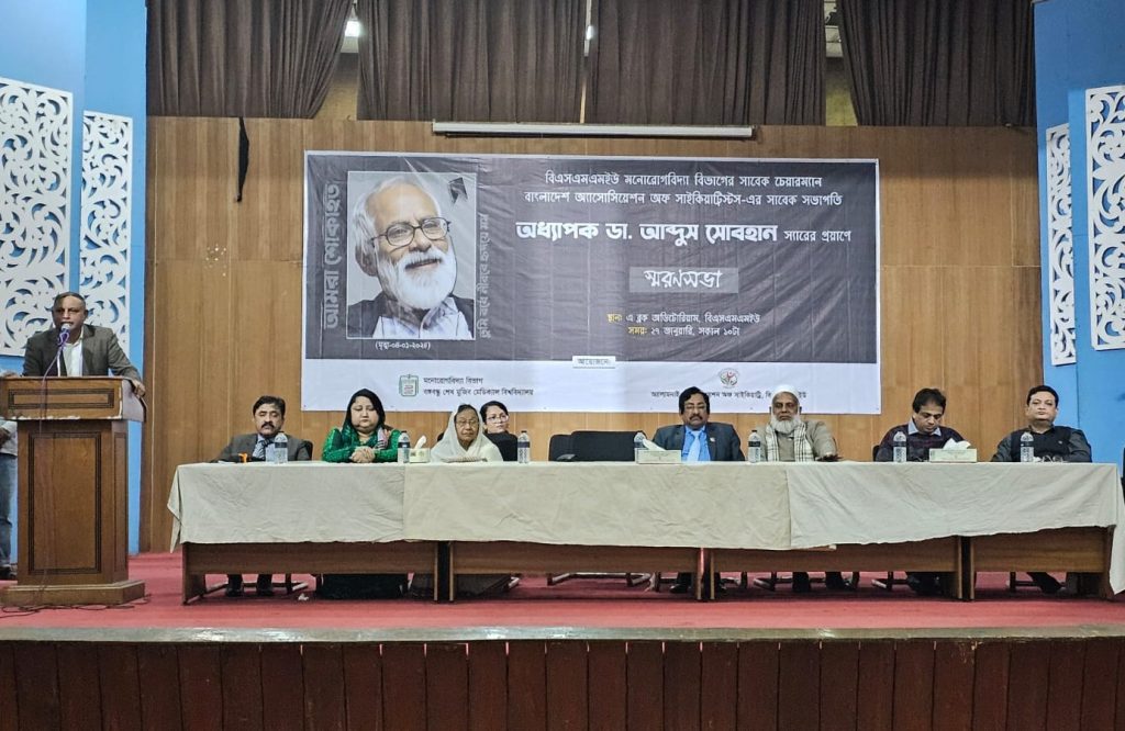 বঙ্গবন্ধু শেখ মুজিব মেডিক্যাল বিশ্ববিদ্যালয়ের (বিএসএমএমইউ) প্রখ্যাত মনোরোগ বিশেষজ্ঞ অধ্যাপক ডা. আব্দুস সোবহানের প্রয়াণে এক স্মরণসভার আয়োজন করেছে বিএসএমএমইউ এর অ্যালামনাই অ্যাসোসিয়েশন অব সাইকিয়াট্রি ও মনোরোগবিদ্যা বিভাগ।