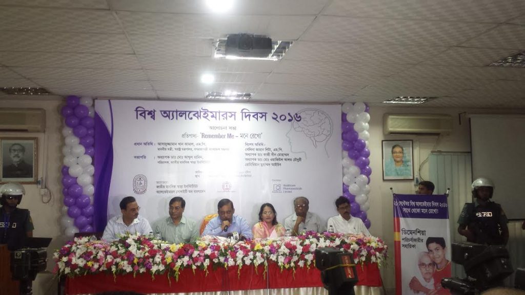 ২১ সেপ্টেম্বর বিশ্ব অ্যালঝেইমারস দিবস উপলক্ষ্যে ‘অ্যালঝেইমার সোসাইটি অফ বাংলাদেশ’ ও ‘জাতীয় মানসিক স্বাস্থ্য ইনস্টিটিউট’-এর উদ্যোগে জাতীয় মানসিক স্বাস্থ্য ইনস্টিটিউটে গতকাল অনুষ্ঠিত হয়ে গেলো এক সেমিনার। এবারের সেমিনারের প্রতিপাদ্য বিষয় ছিল- ‘সাথে থেকো, মনে রেখো’। অনুষ্ঠানের প্রধান অতিথি ছিলেন গণপ্রজাতন্ত্রী বংলাদেশ সরকারের মাননীয় স্বরাষ্ট্রমন্ত্রী জনাব আসাদুজ্জামান খান কামাল। বিশেষ অতিথি হিসেবে ছিলেন মাননীয় সংসদ সদস্য জনাব সেলিনা জাহান লিটা, অধ্যাপক ডাঃ মোঃ ওয়াজিউল আলম চৌধুরী এবং রোটারিয়ান মোহাম্মদ আইউব। সভাপতিত্ব করেন জাতীয় মানসিক স্বাস্থ্য ইনস্টিটিউটের পরিচালক অধ্যাপক ডাঃ মোঃ আবদুল হামিদ।