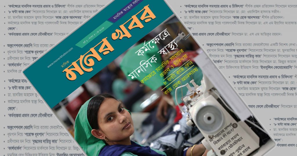 - ‘কর্মক্ষেত্রে মানসিক সমস্যার প্রভাব ও চিকিৎসা’ শীর্ষক প্রচ্ছদ প্রতিবেদন লিখেছেন মনোরোগ বিশেষজ্ঞ ডা. পঞ্চানন আচার্য্য।