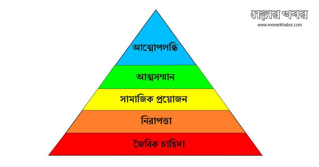 আমরা একটু চোখ কান মন খোলা রেখে খেয়াল করলে বাস্তব জীবনে সহজেই এটা মেলাতে পারব। এই তত্ত্বটিতে মানুষের প্রয়োজনকে মোটামুটি ৫ ভাগে আলোচনা করা হয়েছে। খুব দৃঢ় ভাবে বলা হয়েছে যে, মানুষ প্রথমে নিম্ন স্তরের প্রয়োজনগুলো মেটানোর পর ক্রমাগতভাবে উপরের স্থরের প্রয়োজন মেটাতে চেষ্টা করবে। নিচের স্তরের প্রয়োজন না মিটিয়ে উপরের স্তরের প্রয়োজন মেটানো সম্ভব নয়।