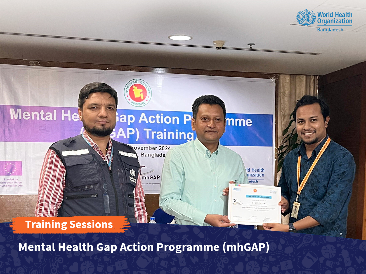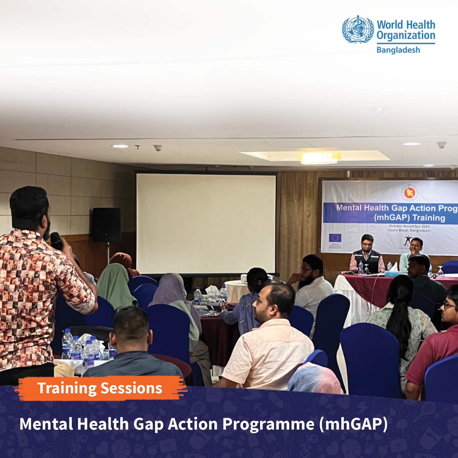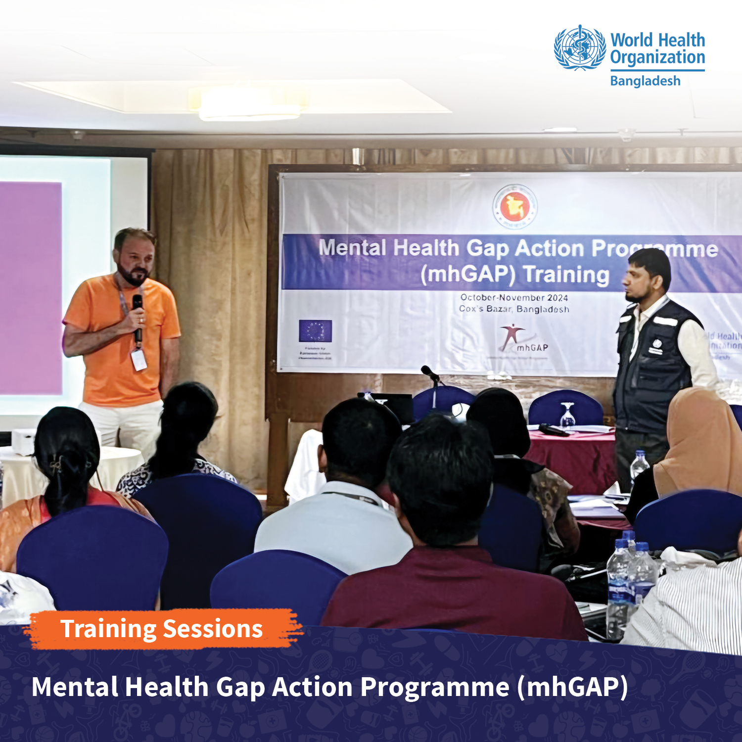 কক্সবাজারে রোহিঙ্গা শরণার্থীদের এবং স্থানীয় জনসাধারণের মানসিক স্বাস্থ্যসেবা সহজলভ্য করতে বিশ্ব স্বাস্থ্য সংস্থা (WHO) মানসিক সাস্থসেবাকে প্রাথমিক সাস্থসেবায় সম্পৃক্ত করার লক্ষ্যে একাধিক সক্ষমতা বৃদ্ধি প্রশিক্ষণের আয়োজন করেছে EU Civil Protection & Humanitarian Aid (ECHO)-এর সহায়তায়।