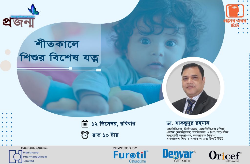 মনের খবর টিভির নিয়মিত আয়োজন ‘প্রজন্ম’র এবারের বিষয়- ‘শীতকালীন শিশুর বিশেষ যত্ন’। ১২ ডিসেম্বর রবিবার, রাত ১০ টায় মনের খবর টিভিতে অনুষ্ঠানটি সম্প্রচার করা হবে। এই বিষয়ে কথা বলতে উপস্থিত থাকবেন বাংলাদেশ শিশু হাসপাতাল এন্ড ইন্সটিটিউটের নবজাতক বিভাগের সহযোগী অধ্যাপক ডা. মাকছুদুর রহমান। সঞ্চালনায় থাকবেন সাফাত ইবনে নাজির ।